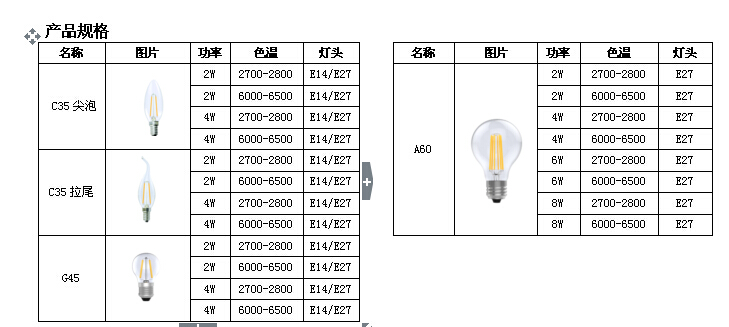 4.國際通用E27 E14燈口,標(biāo)準泡殼完全替代傳統(tǒng)鎢絲燈泡