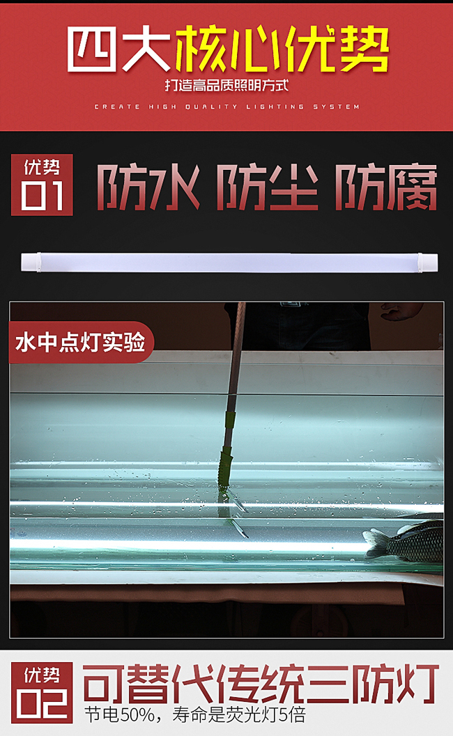 - 產(chǎn)品簡(jiǎn)介:產(chǎn)品特點(diǎn) ?寬電壓輸入,AC85~260V; ?LED光效>100LM/W; ?高效的散熱處理,光通維持率近95%; ?內(nèi)置隔離低壓恒流驅(qū)動(dòng),安全、穩(wěn)定、可靠; ?燈殼通過(guò)2500V耐壓測(cè)試; ?燈殼是由阻燃硬質(zhì)PC擠出成型,具備極好的耐腐蝕性,且具有很好的力學(xué)性能,可直接沖洗; ?三防:防水、防塵、防腐,防護(hù)等級(jí)IP65; ?重量輕,安裝方便。