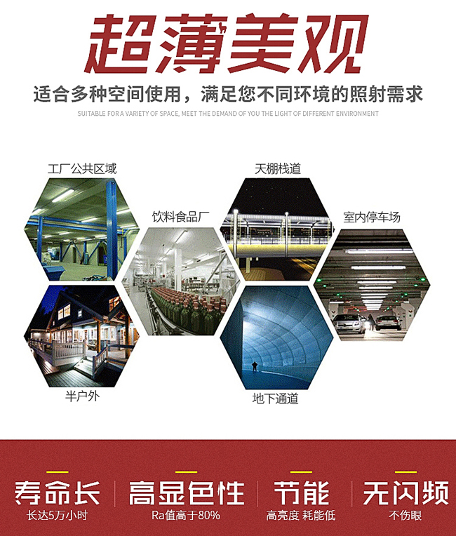 工廠車(chē)間、辦公室、食品廠、冷庫(kù)、商場(chǎng)、超市、紡織廠、防腐等場(chǎng)所的照明,