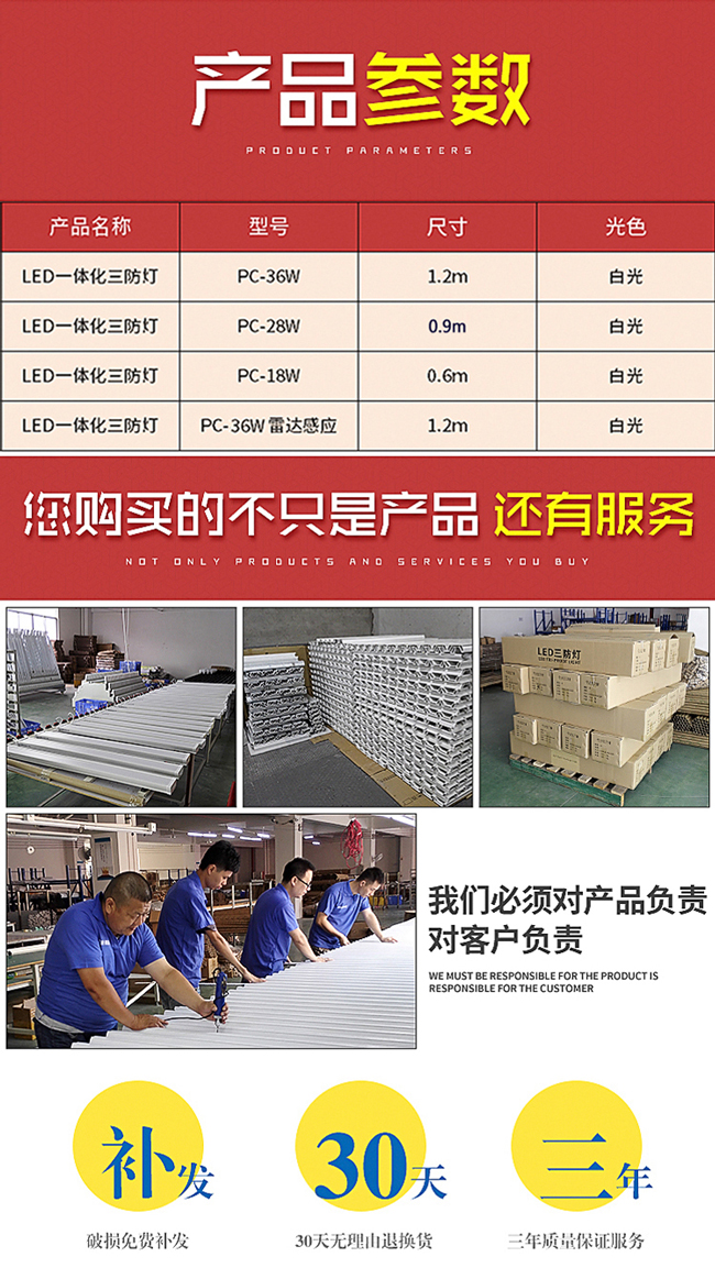 - 產(chǎn)品名稱(chēng):PC一體化LED三防燈 18W-36W