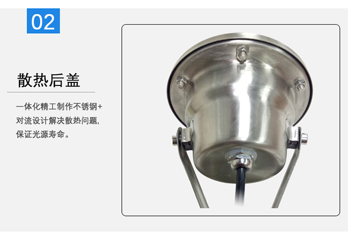 2、一體化精工制作不銹鋼+對流設(shè)計(jì)解決散熱問題,保證光源壽命。