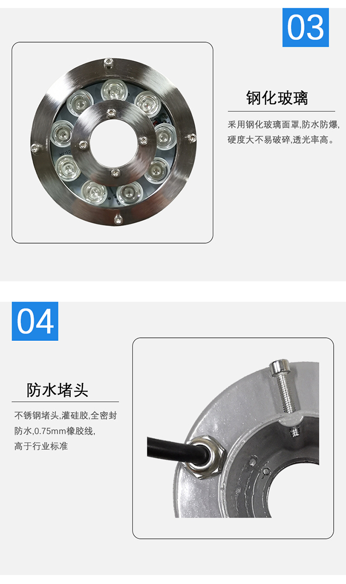 3.釆用鋼化玻璃面罩,防水防爆,硬度大不易破碎,透光率高。
