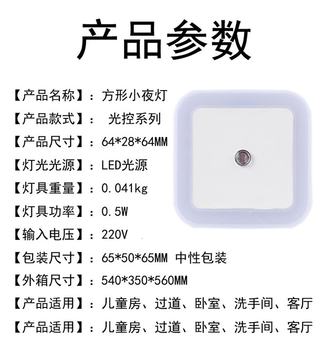 * 表示必填采購:光控感應(yīng)方形小夜燈