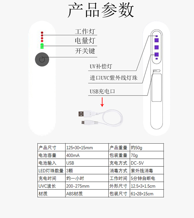 * 表示必填采購:便捷式家用殺菌燈PSJD-03